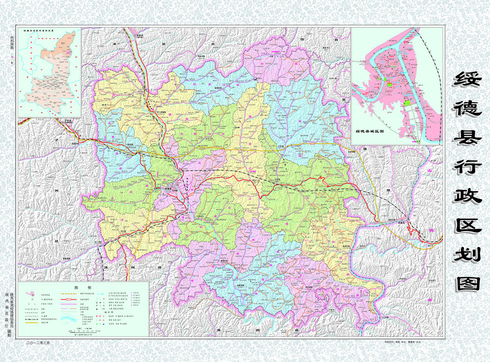 绥德县位于榆林市东南部,东邻吴堡,西邻子洲,南接清涧,北连米脂,东北与佳县接壤,东南与山西柳林县隔(黄)河相望。县境东西长56公里,南北宽51.6公里,土地总面积1853平方公里,其中耕地面积67.23万亩;地势东北高,西南低,海拔607.8米—1287米;境内为典型的峁梁状黄土丘陵沟壑区,地貌基本结构是“三个为主”:即全县土地以峁梁沟坡地为主,占全县土地总面积的63.6%,在峁梁沟坡地中以坡地为主,占85.7%,在坡地中以25度以上的陡坡地为主,占51.24%;年平均降雨量486毫米,年平均气温9.7度,无霜期165天,属温带大陆性半干旱气候;境内较大的河流有黄河、无定河、大理河、淮宁河、义合河。无定河和大理河绕城而过,[点击详情]
