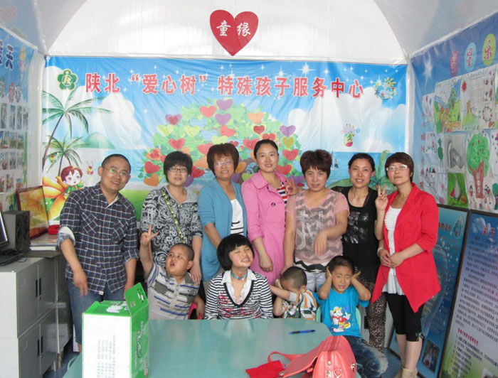 陕北爱心树特殊孩子服务中心作为陕北地区第一个也是唯一一个以帮助自闭症等特殊孩子的服务机构,成立至今,一直为陕北以及周边市县自闭症、脑瘫等身心发育障碍的孩子及家长提供服务,中心是由榆林市绥德县残疾人联合会批复、榆林市绥德县民政局注册、特殊孩子家长自筹资金创办的公益性民办非企组织,是中华少年儿童慈善救助基金会童缘项目的二期执行机构,现有活动场所窑洞一孔,专职志愿者教师一名,自闭症儿童30多人。成立以来,中心成功举办2011年世界自闭症关爱日 “和特殊孩子一起过快乐时光”主题活动,邀请美国五项目自闭症专业专家到中心交流指导。2012年6月,中心荣获中华儿慈会嘉奖。2012年8月,中心开办了“童缘——爱心技能培训班”,在宁夏黄河善谷慈善展览会上,民政部部长窦玉沛亲自为中心挂起了象征爱心树发起的爱心连连、爱无疆界的剪纸挂图,北京自闭症论坛爱心人士闫培通过爱心树给“脑瘫兄妹”捐赠轮椅一台。县残联、民政等部门领导,中华儿慈会童缘项目主任李新民亲临我中心视察工作。