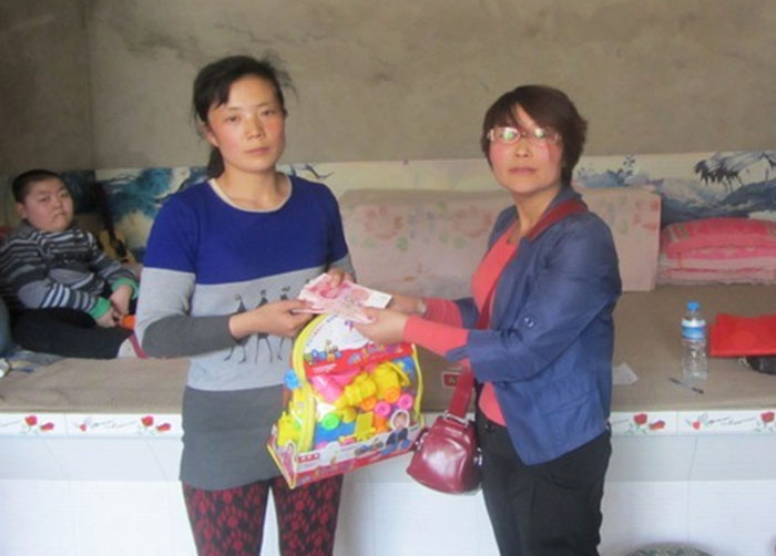 图五、中心工作人员到辛店乡暖水沟村看望项目资助的脑瘫兄妹