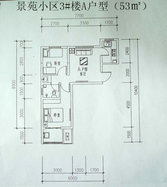 (一)、3号楼:1、A户型108套,建筑面积约53平方米;
