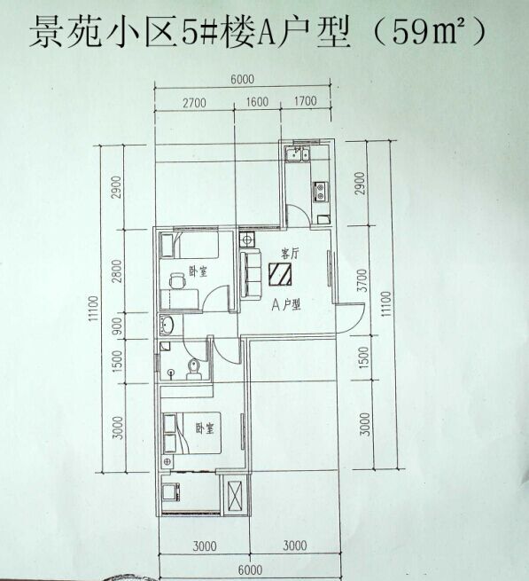 (二)、5号楼:1、A户型约59平方米,预缴房款:90000元;
