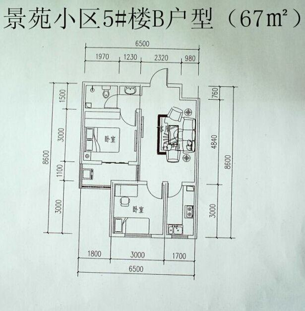 2、5号楼,25层,一梯四户,七个单元672套,共有A、B两种户型,各336套,其中A户型建筑面积约59平方米,B户型建筑面积约67平方米。