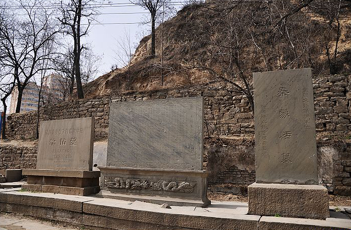 秦将蒙恬墓,位于陕西省绥德县城西大理河畔。墓冢成馒头形。据《绥德州志》记载,墓高50余米。后因历史久远,风雨剥蚀和施工修建等人为因素,使墓冢成不规则形。1984年,有关部门进行考古钻探,清理出秦代夯土层。蒙恬墓原有清代石碑两通(其中1通断为两截),碑高1.42米,系清·乾隆年间知州张元林所立,镌刻“秦将军蒙恬墓”,为知州江士松手书。