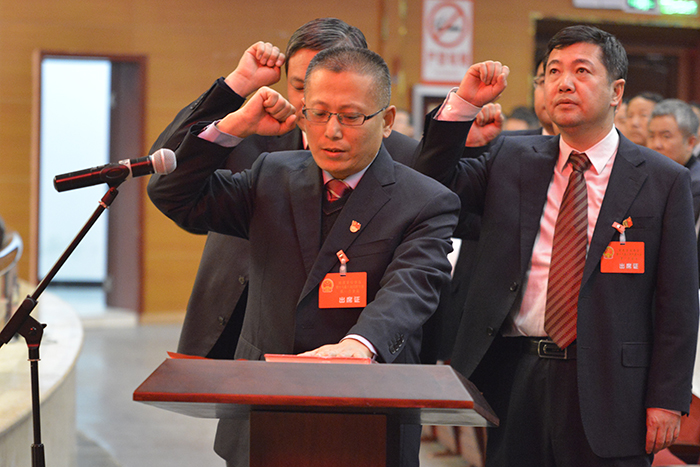 姬跃飞带领新当选的副县长、法院院长向宪法宣誓
