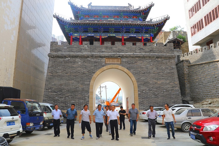 姬跃飞一行先后对银川门、规划展室、革命历史纪念馆、汉画像石馆和扶苏文化苑建设施工场地、北门坡传统街区进行了实地调研,详细解了名州镇省级文化旅游街区历史文化内涵及布局、规划、建设进展等情况。