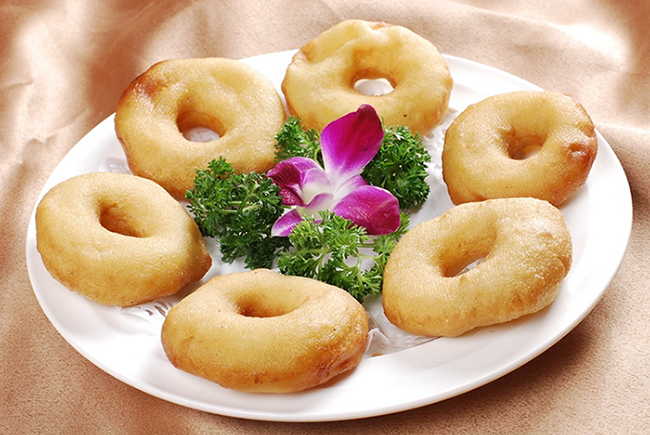 绥德的一种风味小吃。饼状,中间有小孔,较小。由土豆、白面、荞面、糖等杂粮和在一起炸制而成。味道甘甜、可口。 圆形,环状,炸熟后,金黄似铜钱,在延安民俗中是富裕吉祥的象征。黄米磨面、细箩,用软米熬成滚米汤烫面,置热炕发酵。面发后,摊制成一个个中间有孔的小圆饼,入油锅炸至红褐色即可。油馍馍一般常见于逢年过节或款待亲朋好友时,特别是婚庆筵席中。食用时佐以粉汤,味道盛佳。油馍馍色泽金黄、细腻柔软,经久而不变色不变质。