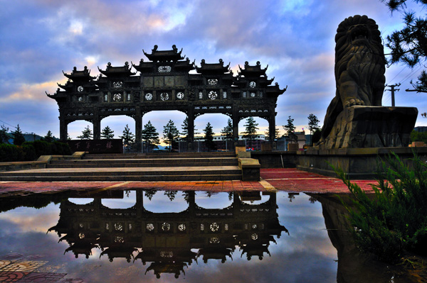 刚跨入新世纪的2002年,天下名州城南五里的学子大道与210国道丁字交汇处,耸立起一座气吞山河的石牌楼。石牌楼为五门六柱十九楼,双面单式结构,长36.9米,高16.9米,由一千一百六十八块雕石、六十六幅人物典故浮雕组成。石牌楼的五门取意中兴之门,走向世界之门。六柱蕴含大顺之意。十九楼中,十其实是一,一元复始,气象万新;九为多多益善,欣欣向荣。石牌楼大楼小楼互帮互衬;左楼右楼比肩并列、映带;前楼后楼有呼有应,上楼下楼,下者基础沉稳,上者先领风光。整座石牌楼庄严肃穆、和谐统一。