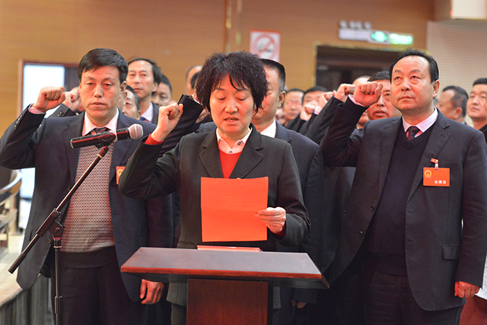 姬跃飞带领新当选的副县长、法院院长向宪法宣誓