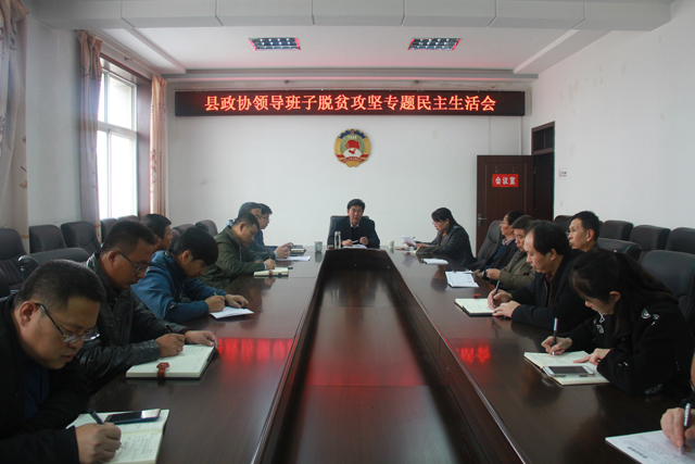 2017年10月28日下午,县政协领导班子在政协三楼会议室召开了脱贫攻坚专题民主生活会。政协主席李永国、副主席赵青、秘书长李晓赟参加了会议,政协全体机关干部列席了会议。会议由政协主席李永国主持。会上,秘书长李晓赟对10月28日上午县委召开的脱贫攻坚民主生活会的情况进行了全面传达,特别对李永奇书记提出的下一阶段脱贫攻坚工作思路和要求作了详细传达。之后,班子成员李永国和赵青分别就各自在脱贫攻坚工作中存在的问题作了全面剖析;对产生问题的原因从思想根源上进行了深刻分析;对今后努力方向和改进措施方面作了明确表态。最后,李永国对下一阶段的脱贫攻坚工作作了安排部署并提出了具体要求。在此次脱贫攻坚专题民主生活会上大家听到了真话、找到了问题、取得了共识,明确了方向,达到了预期目的。