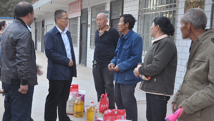 10月13日,县委副书记、代县长姬跃飞到韭园高舍沟村看望慰问结对帮扶贫困户,为他们送去米、面、油等慰问品和慰问金。