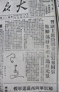 在任中共绥德地委书记期间,习仲勋因地制宜,灵活地贯彻党的统一战线政策,团结一切可以团结的各阶层人士,形成了安定团结的政治局面,为巩固绥德分区的抗日民主政权作出了重大贡献。图为1944年底《解放日报》刊登的相关报道。